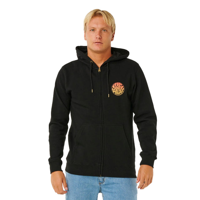 The Wettie Passage Icon Zip Through hoodie offers a standard fit with responsibly sourced cotton-poly fleece. Featuring a kanga pocket, woven flag label, and bold front and back prints, it’s a great choice for surf-inspired days.